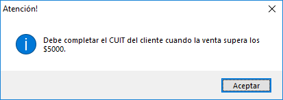 Cuando el cliente supere el monto de $5000 debe agregar el CUIT del mismo por disposición impositiva.