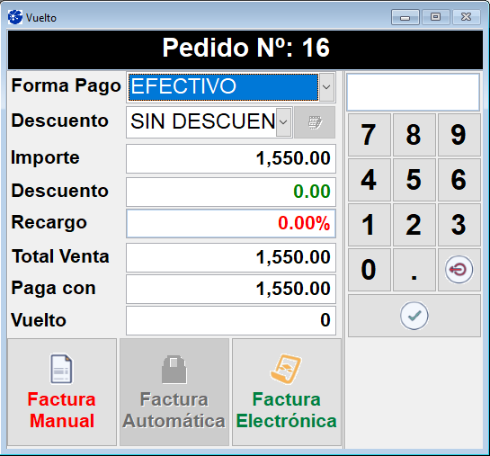 En caso de facturar ventas a clientes mayoristas podrá utilizar también la opción “Factura Electrónica” dentro el Panel de "Formas de Pago".