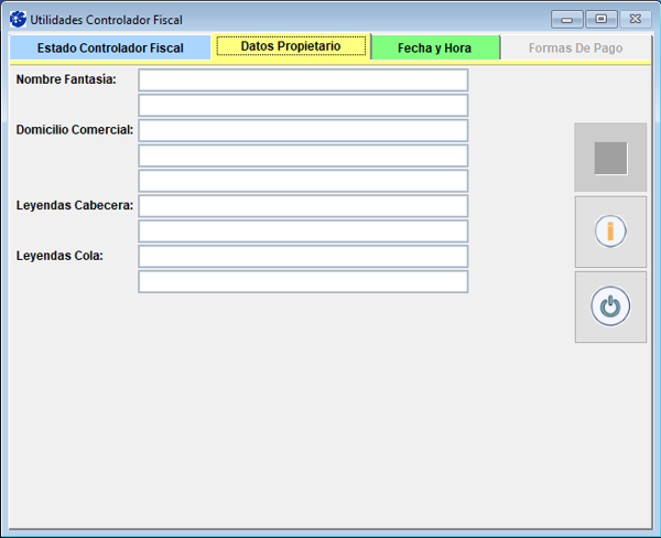 Se mostrará la siguiente ventana con la información configurada de su impresora, tales como Estado del Controlador Fiscal, Datos Propietario, Fecha y Hora.