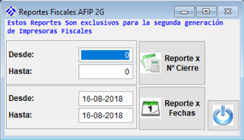 Utilice esta opción para emitir el reporte fiscal que AFIP solicita para los usuarios que cuentan con ImpresorasFiscalesde2daGeneración.