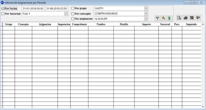 Utilice el detalle de asignaciones para visualizar las diferentes asignaciones cargadas en los comprobantes, según un periodo determinado, agrupados por su tipo.