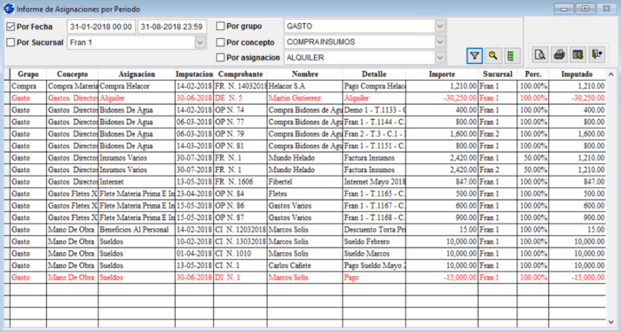 Seleccione la asignación por la cual desea ver el informe. (Compras Helacor, Alquiler, Sueldos, Luz, Internet, etc.).