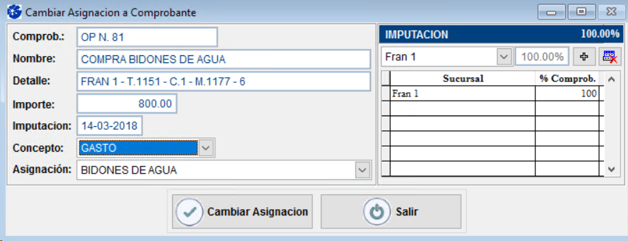 Una vez completada la modificación de la asignación del comprobante, guarde la misma presionando el botón Cambiar Asignación, ubicado en el pie de la pantalla.