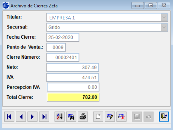 Al agregar o modificar un cierre z, se habilitan los siguientes botones: