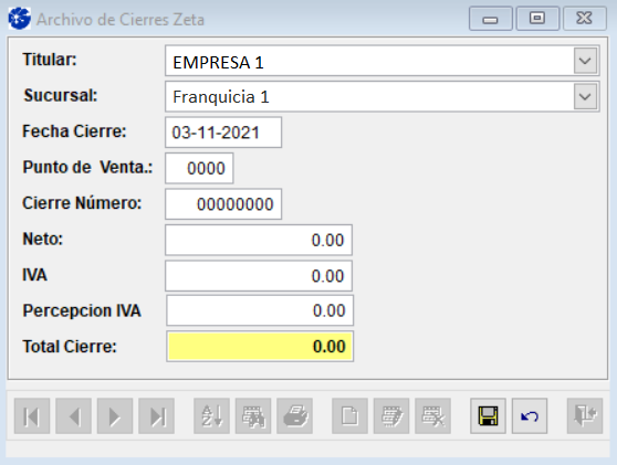 En este formulario, puede cargar manualmente un Cierre Z, o modificar y/o eliminar algún Cierre Z que haya sido cargado manualmente con anterioridad. Los Cierres Fiscales que se vayan a cargar manualmente se guardan en el Libro IVA Ventas actualmente abierto. Corrobore antes de cargar cualquier Cierre Z, que el Libro IVA abierto sea el correspondiente al mes en el que desea cargar el cierre fiscal.