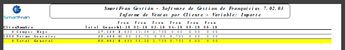ste informe aporta datos de las ventas realizadas a cada uno de los clientes mayoristas entre los meses y años filtrados, y por sucursal.