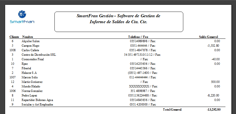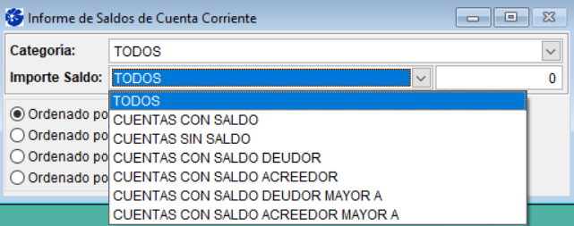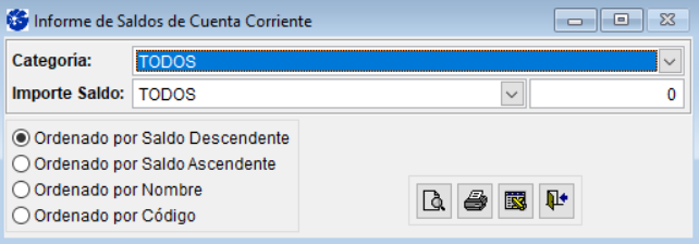 Utilice esta planilla para controlar el saldo según las categorías que se encuentran cargadas en el sistema. Puede filtrar el importe del saldo y ordenarlo de manera ascendente, descendente o por código.