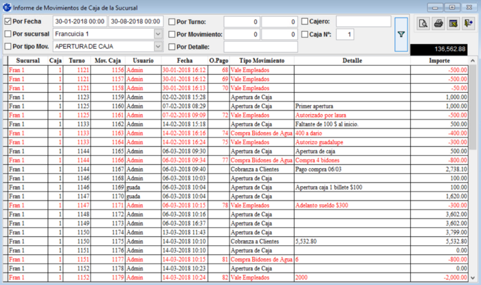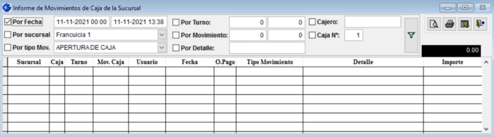 Utilice este informe para consultar los movimientos de caja realizados en alguna sucursal en particular.